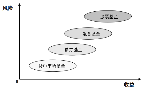 根據(jù)《證券投資基金運(yùn)作管理辦法》對(duì)基金類別的分類標(biāo)準(zhǔn),60%以上的基金資產(chǎn)投資于股票的為股票基金;80%以上的基金資產(chǎn)投資于債券的為債券基金;僅投資于貨幣市場(chǎng)工具的為貨幣市場(chǎng)基金;投資于股票、債券和貨幣市場(chǎng)工具,但股票投資和債券投資的比例不符合股票基金、債券基金規(guī)定的為混合基金。這些基金類別按收益和風(fēng)險(xiǎn)由高到低的排列順序?yàn)椋汗善被?、混合基金、債券基金、貨幣市?chǎng)基金,即股票基金的風(fēng)險(xiǎn)和收益最高,貨幣市場(chǎng)基金的風(fēng)險(xiǎn)和收益最低。