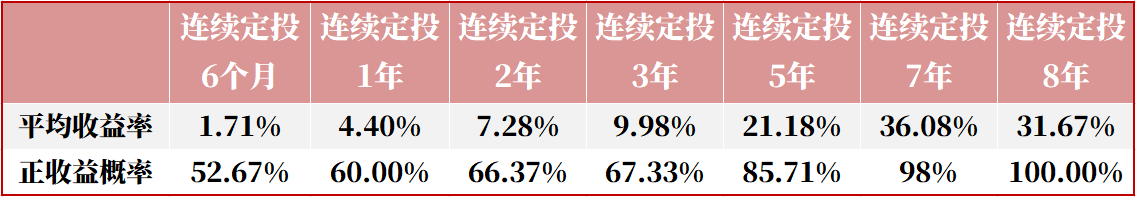 看似簡(jiǎn)單的定投,想要成功,最重要的就是耐心和時(shí)間。我們也拿過去的數(shù)據(jù)做了一些回測(cè),比如中證偏股型基金指數(shù)為例,就發(fā)現(xiàn),隨著定投時(shí)間的周期越長(zhǎng),獲得正收益的概率也就越高,對(duì)于市場(chǎng)先生短期帶來(lái)的風(fēng)險(xiǎn),確實(shí)有較好的平滑作用。